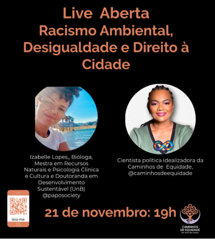 Nesta live, a Caminhos de Equidade propõe um diálogo sobre racismo ambiental, justiça climática e o futuro das cidades brasileiras após a COP 30.